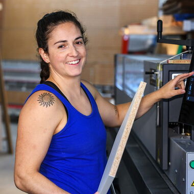 Top-Mitarbeitende, modernste CNC-Maschinen und Geräte: An unserem eigenen Produktionsstandort im Industriegebiet von Wallisellen fertigen wir unsere Möbel und Inneneinrichtungen.